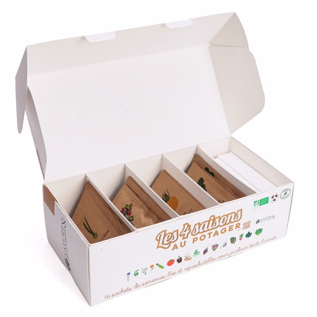 Ce kit de jardinage 4 saisons contient 16 variétés de semences bio soigneusement sélectionnées.