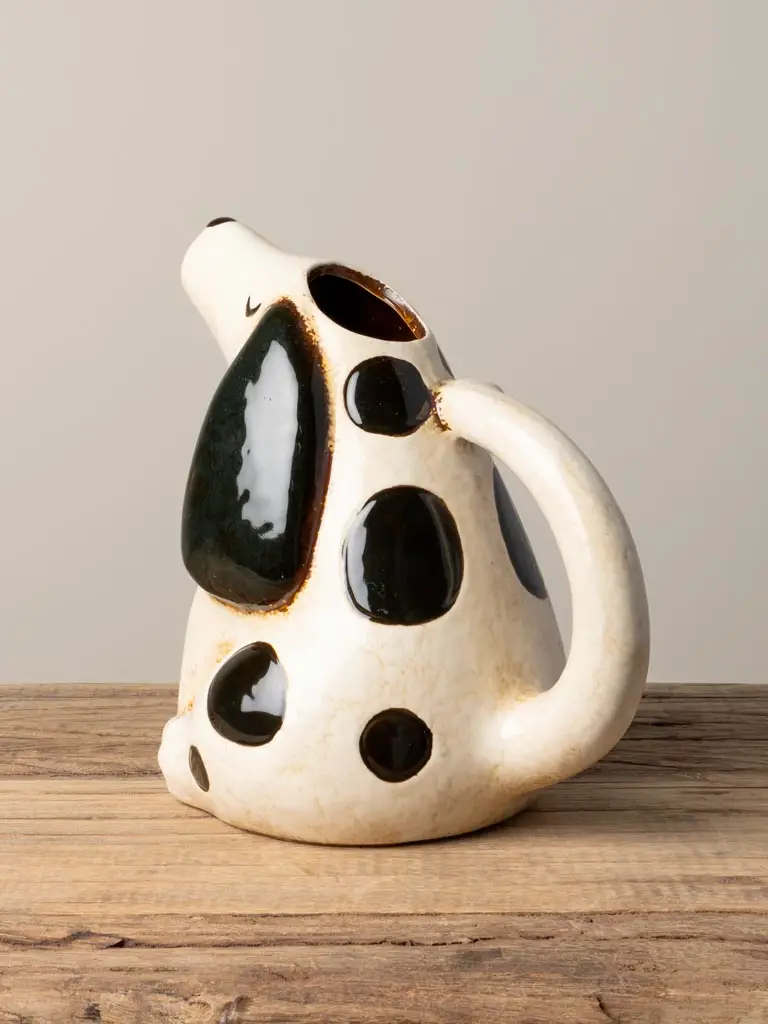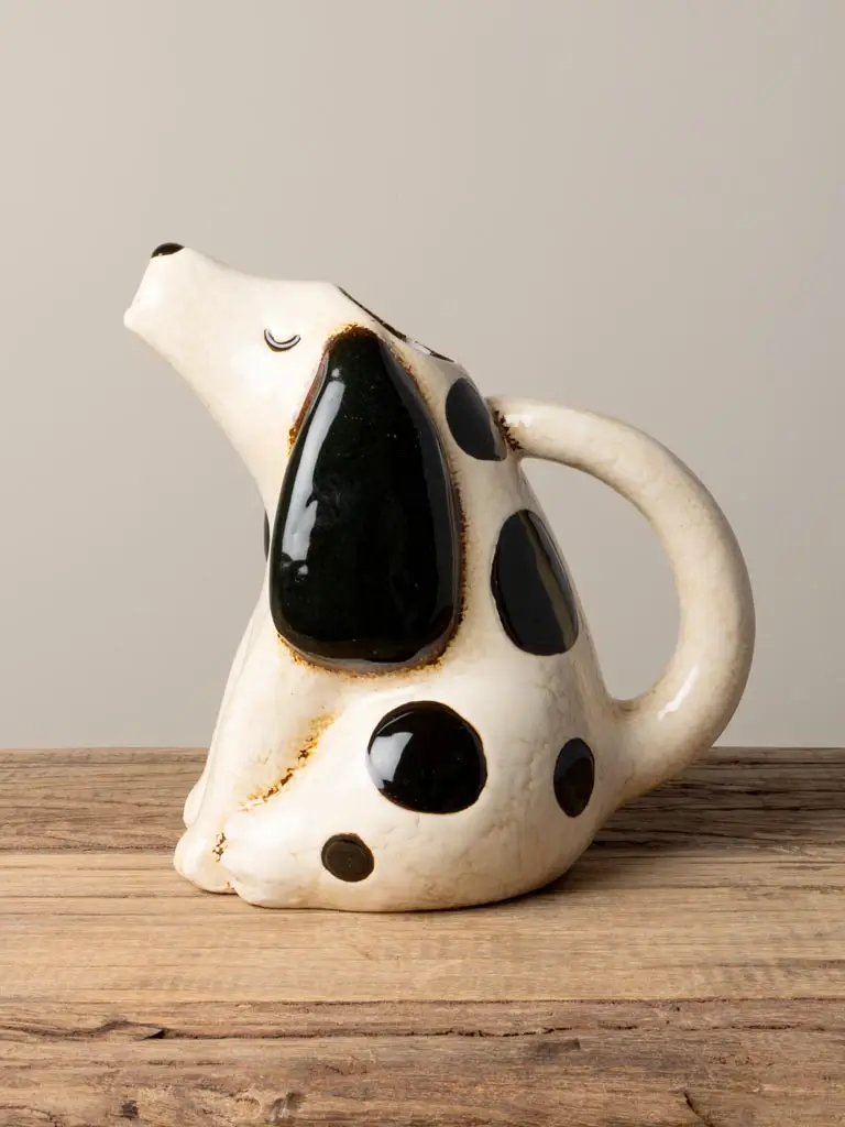 Sa forme de chien blanc et noir crée un effet décoratif unique. Cependant, ce pichet ne se limite pas à un objet esthétique.